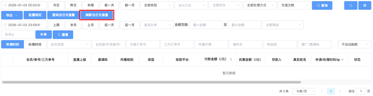 - 刷新当日充值量