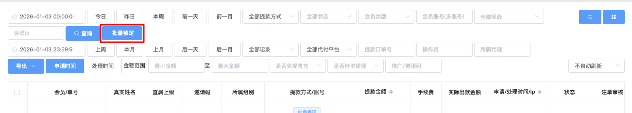 - 点击「批量锁定」按钮