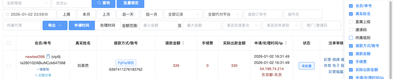 (未处理、锁定、代付处理中、提款成功、提款失败) - 会员类型
