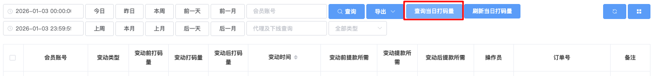 - 查询当日打码量