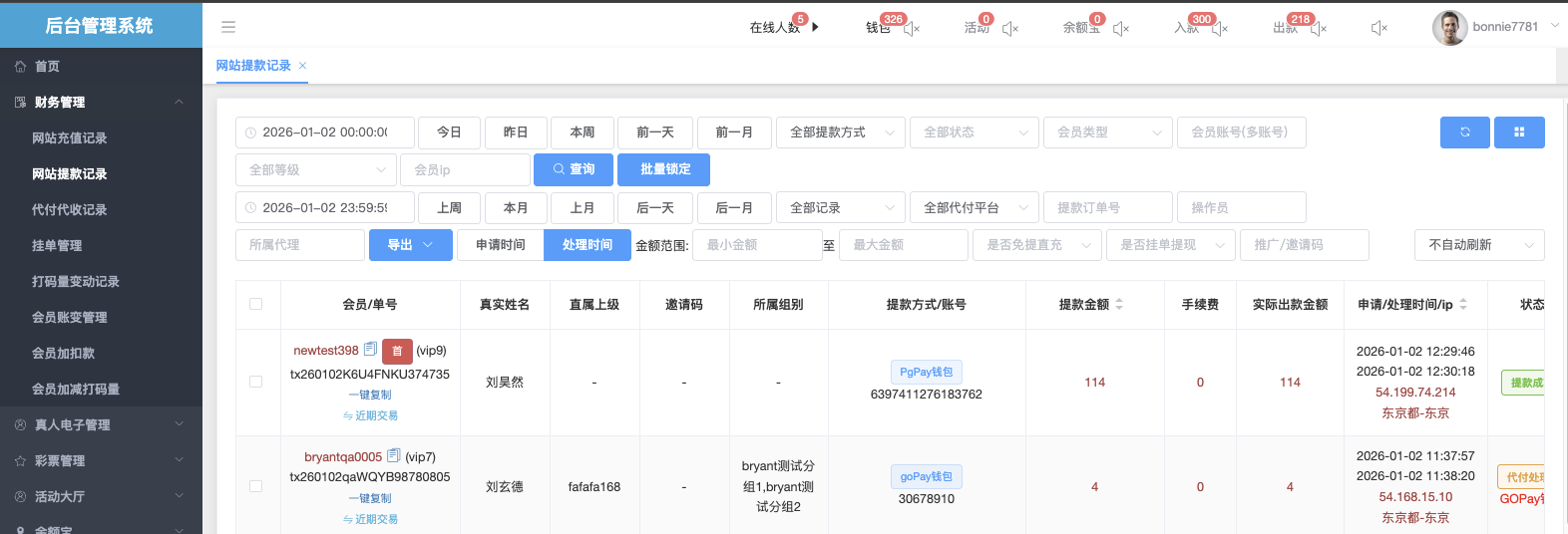 网站提款记录