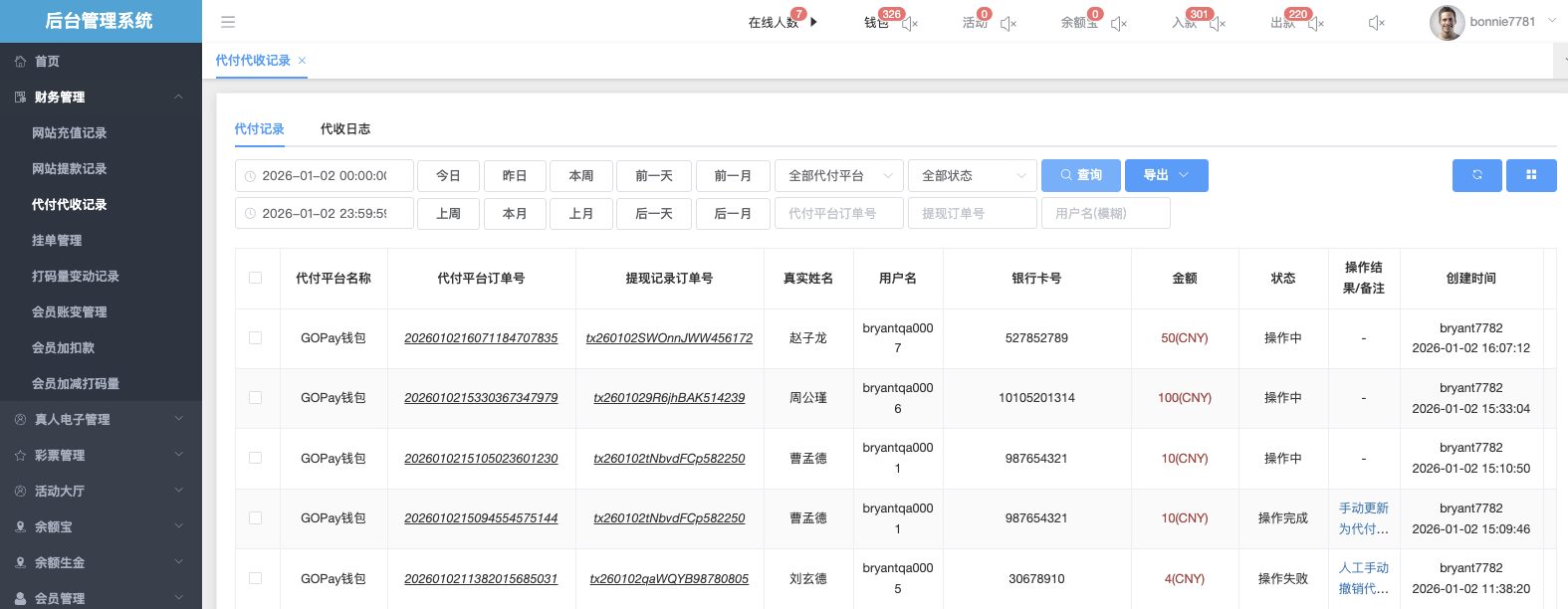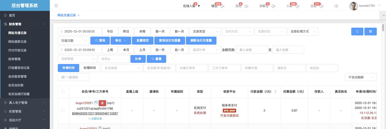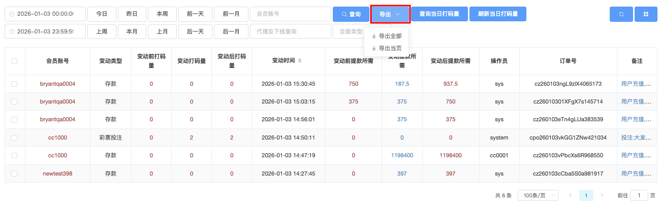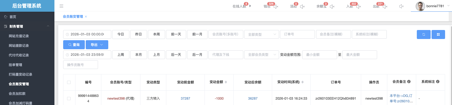 会员帐变管理