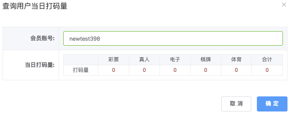 在「查询用户当日打码量」输入框中填写会员帐号
