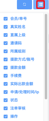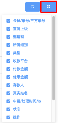 - 勾选想要显示的栏目(例如:订单号、类型、状态、付款金额等)