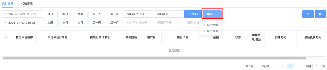 - 导出当页 → 仅导出当前页面显示的数据