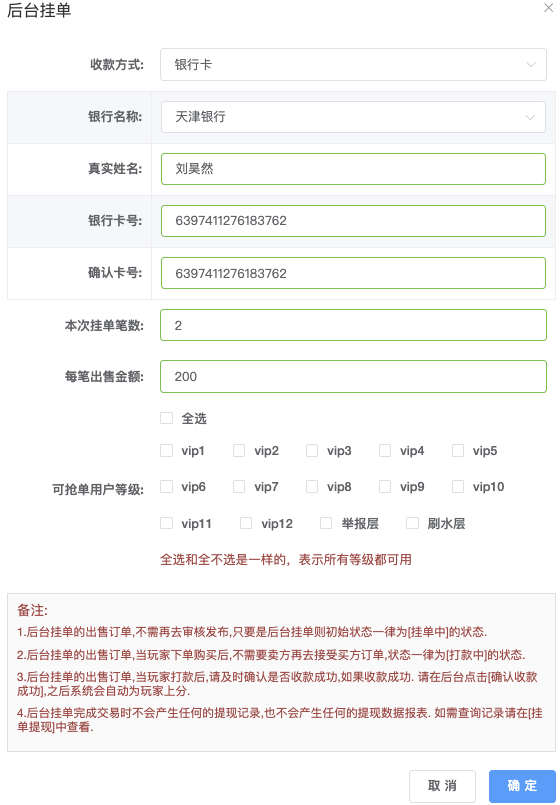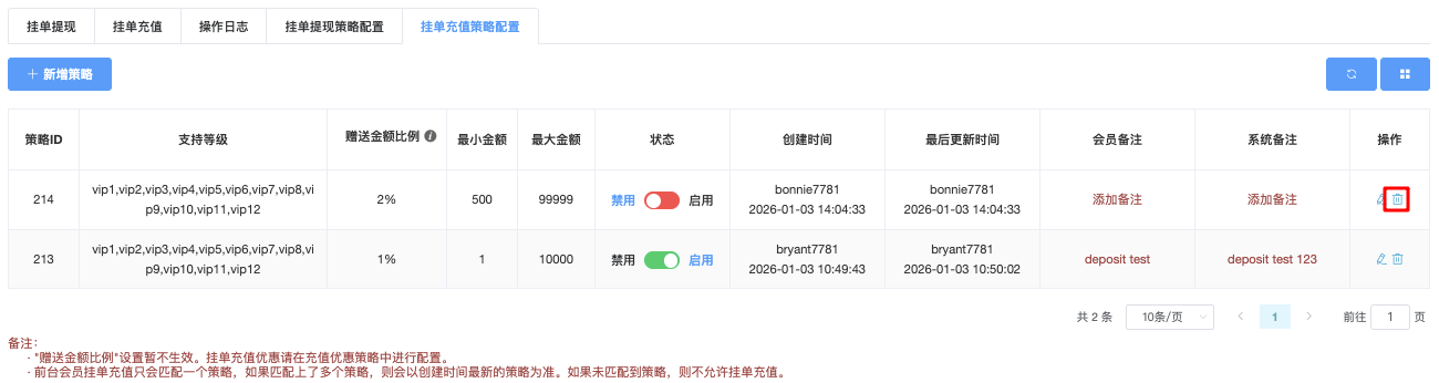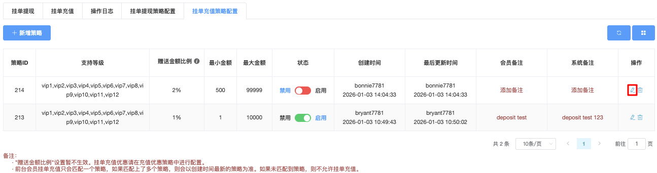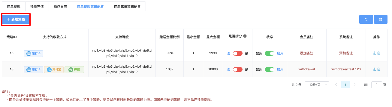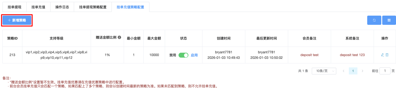 挂单充值策略配置