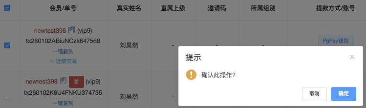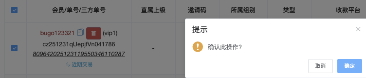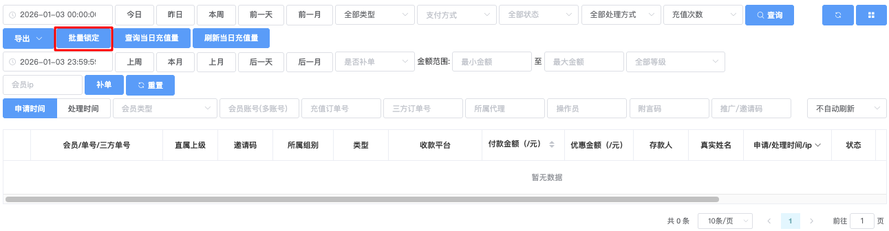 - 在列表左侧勾选需要锁定的充值记录(可多选)
