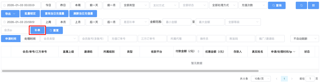 - 充值订单号:输入订单号进行查询。