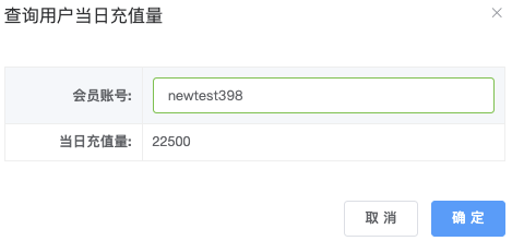 - 在「查询用户当日充值量」输入框中填写会员帐号