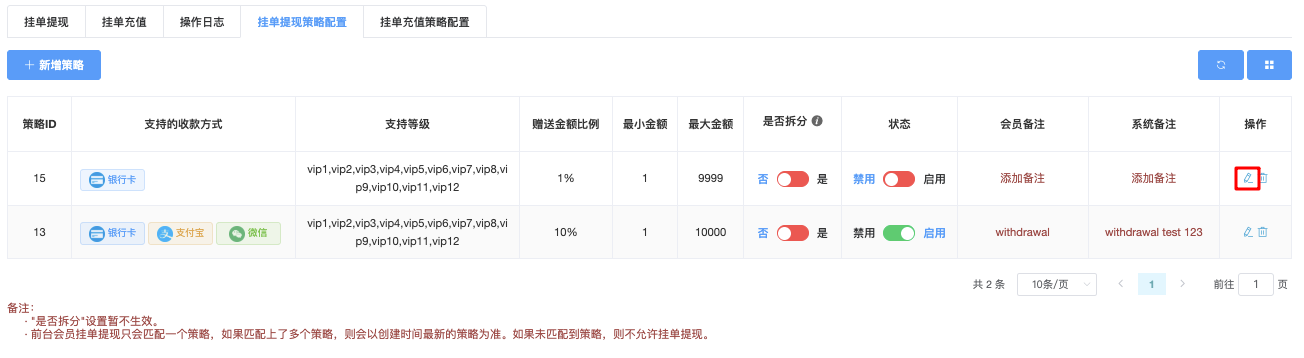 - 在需要修改的配置策略右侧操作栏,点击「」编辑按钮。