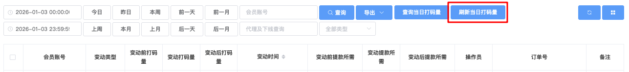- 刷新当日打码量
