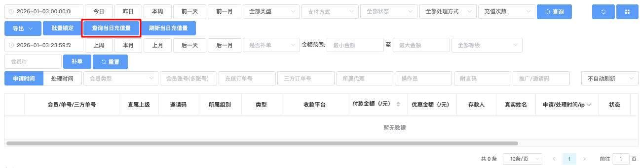 - 查询当日充值量