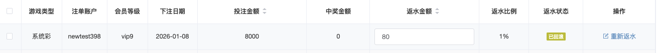 若仅需处理单个会员的返水,在表格对应行右侧的“操作”栏,点击「