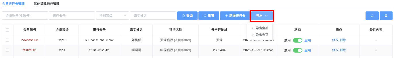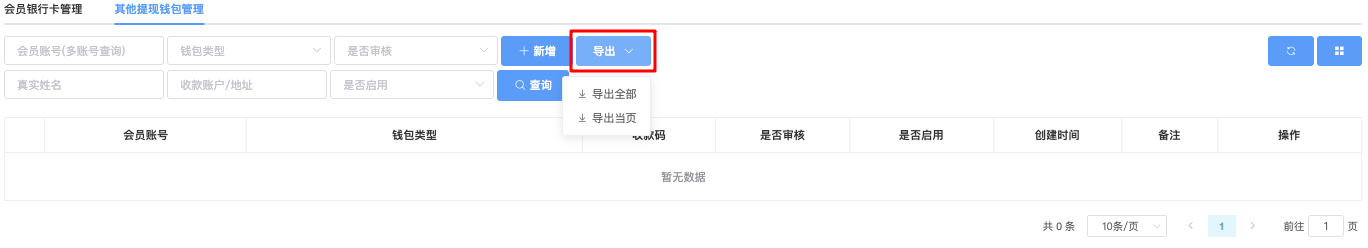 - 导出全部 → 导出符合当前筛选条件的全部数据