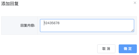 点击「添加回复」回复内容完成后,点击「确定」即可完成送出。