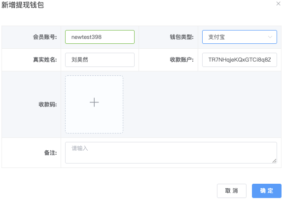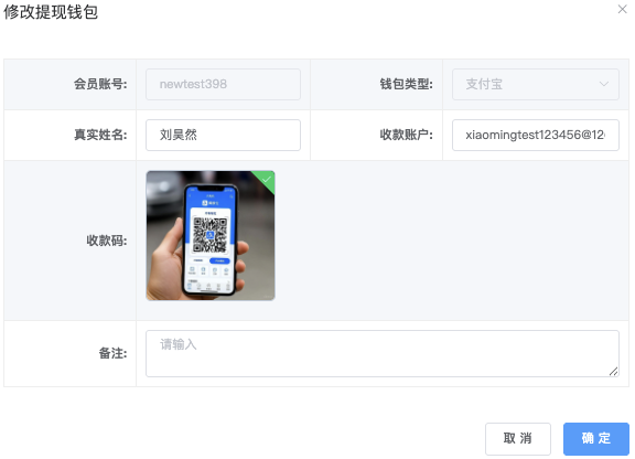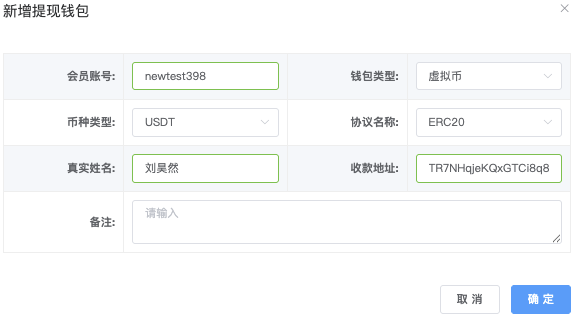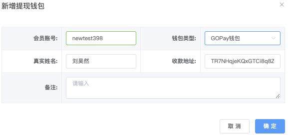 - 「备注内容」栏位:点击「添加备注」跳出「填写备注」弹窗,编辑完成确认即可保存。