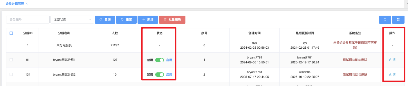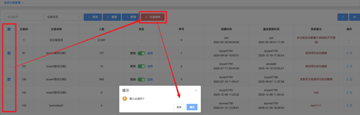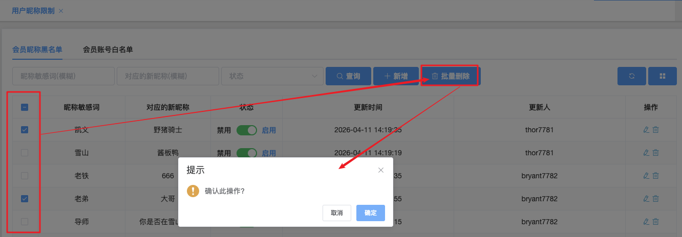 批量删除、批量启用、批量禁用
