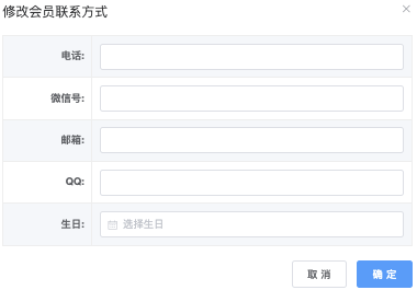- 「修改联系方式」点击后,跳出弹窗填写完成,点击「确定」执行 / 「取消」放弃操作