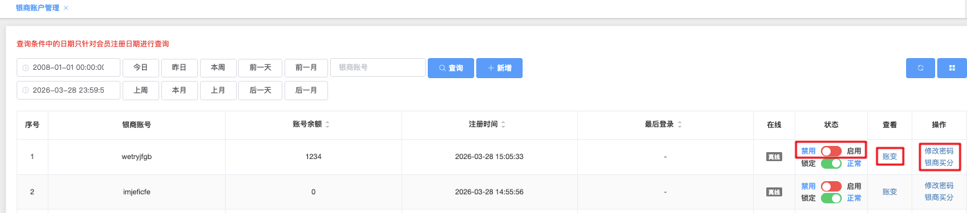 - 查看:「帐变」点击后跳转至「会员帐变管理」快速查看该银商内的所有帐变资讯。