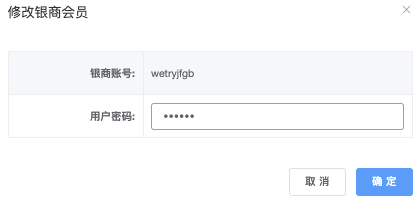 - 「修改密码」:点击后跳出「修改银商会员」,编辑完成「确认」即可完成修改。