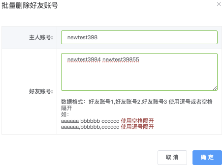 - 好友账号:输入好友帐号(如 newtest3981)