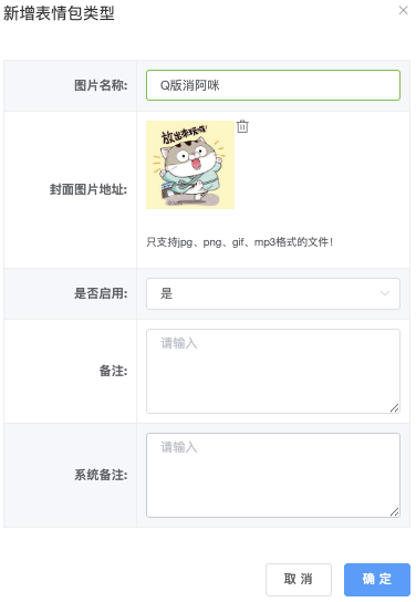 - 封面图片地址:上传该表情包封面图档