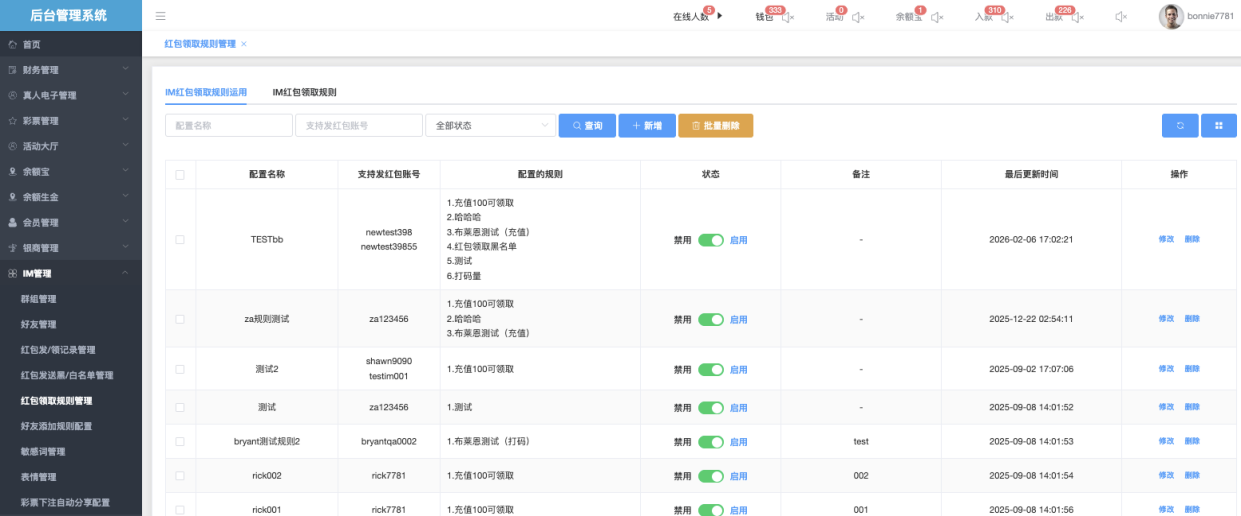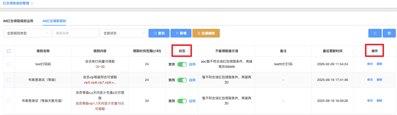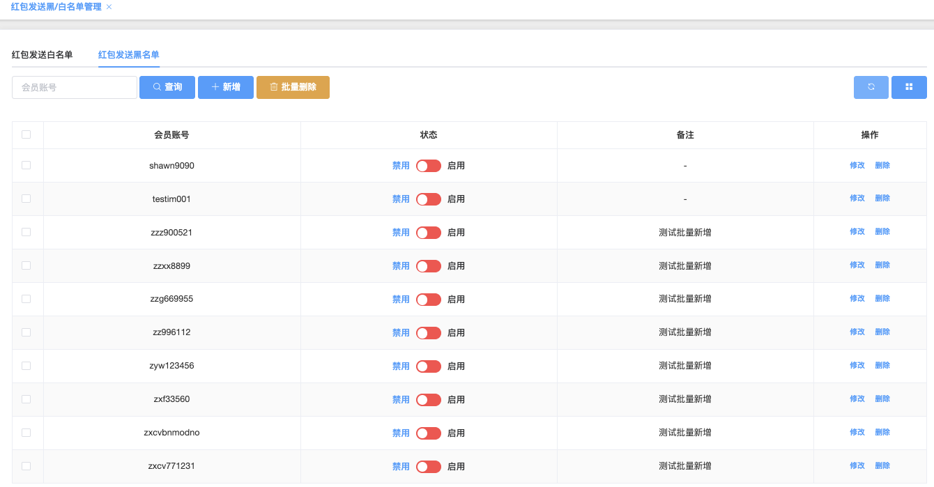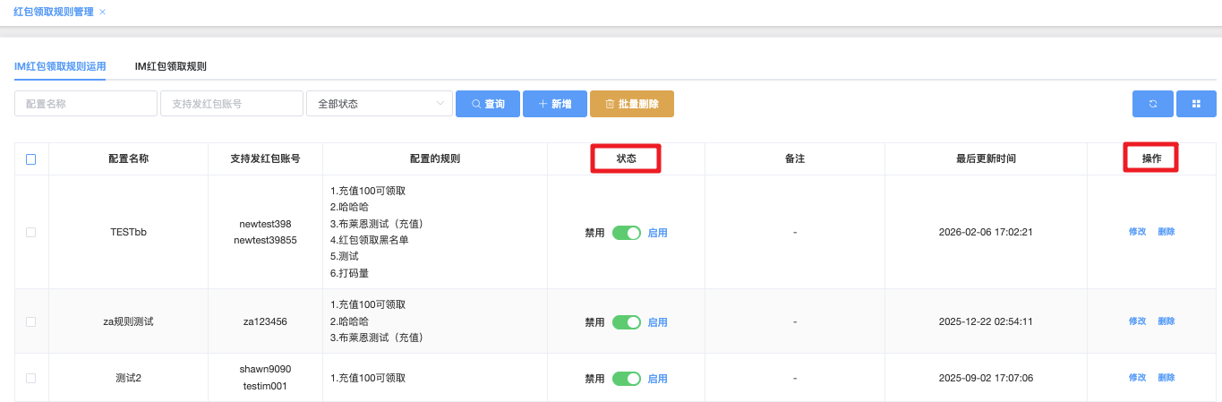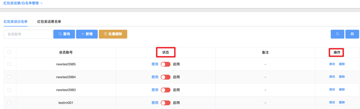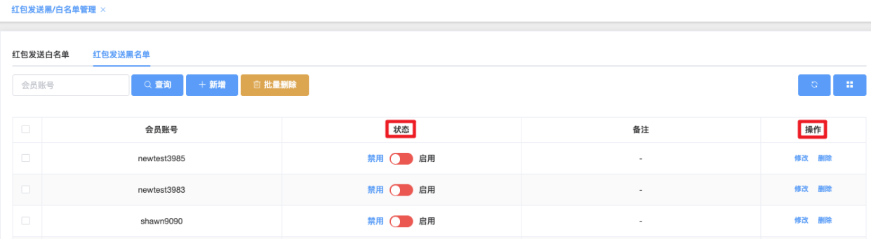 - 状态:禁用(红色) / 启用(绿色),可快速操作此状态