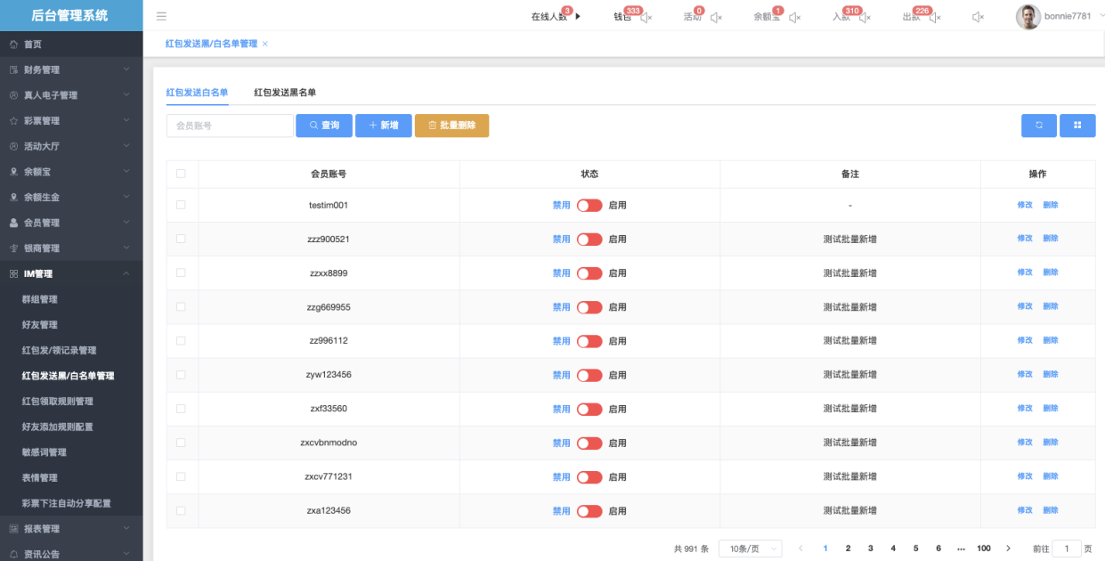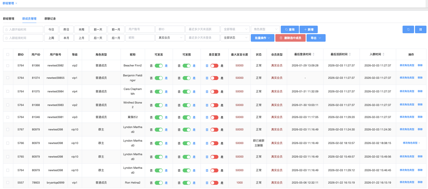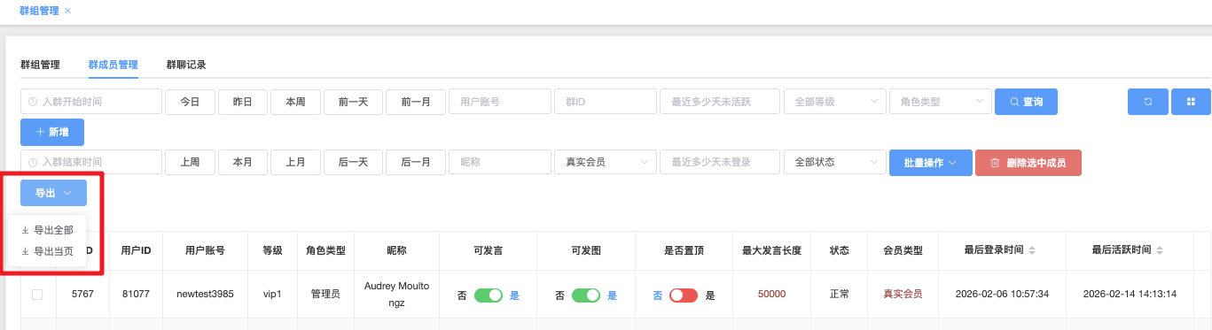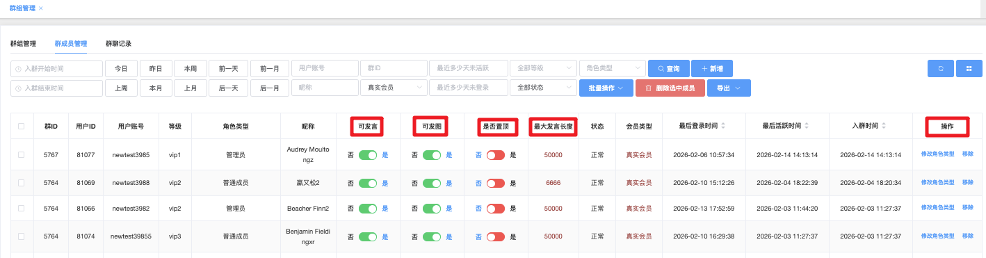 - 批量修改是否可发言