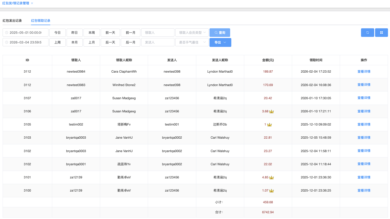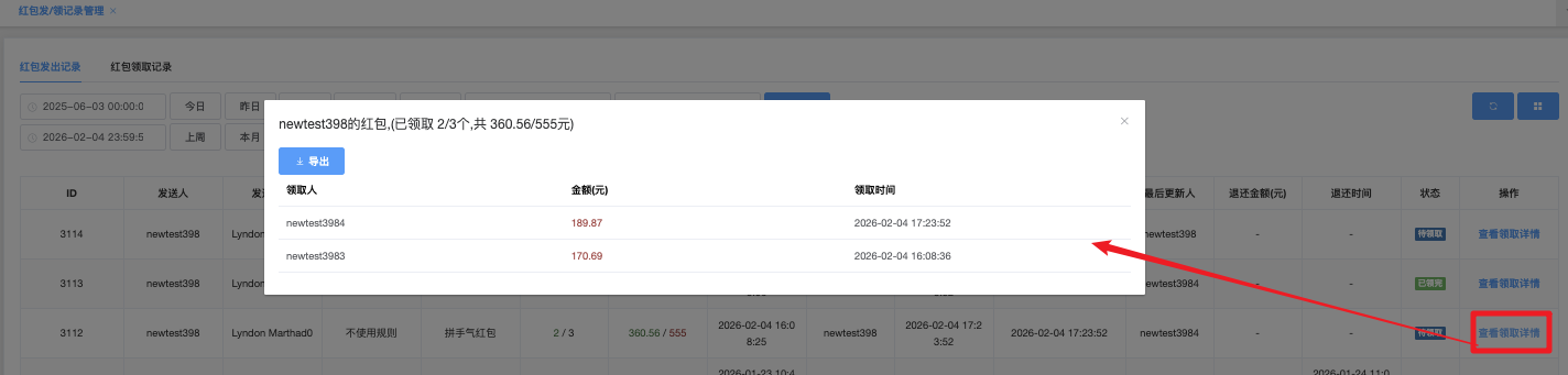 - 用户账号:输入会员帐号,精确查询(如 newtest3981)