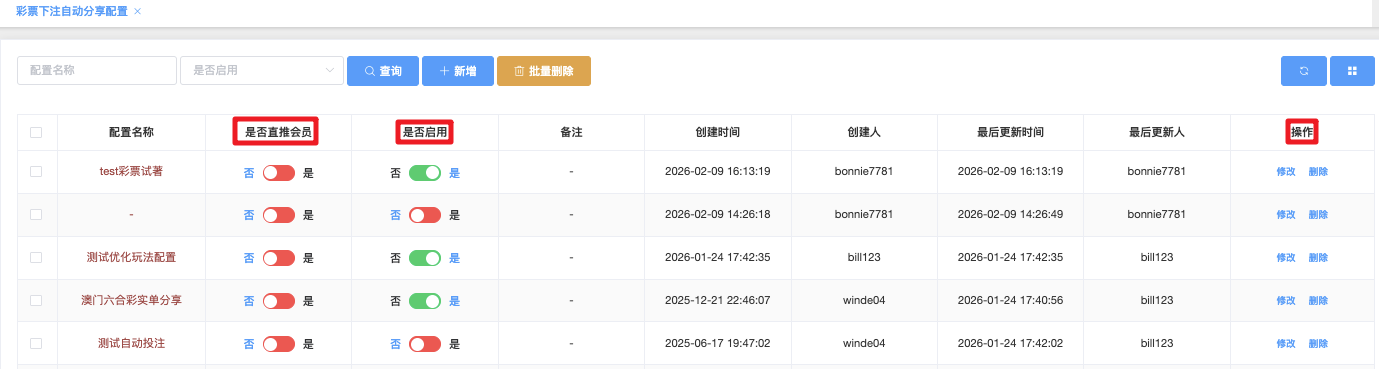 - 配置名称:必填,自定义名称,便于识别(如“2026六合彩分享规则”)
