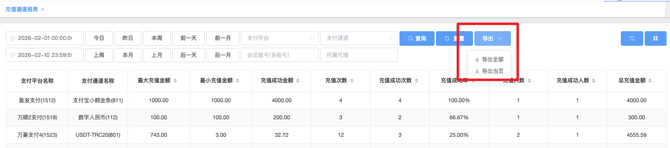 📌 日期筛选以充值到账时间为统计依据;提现以提款到账时间为准。