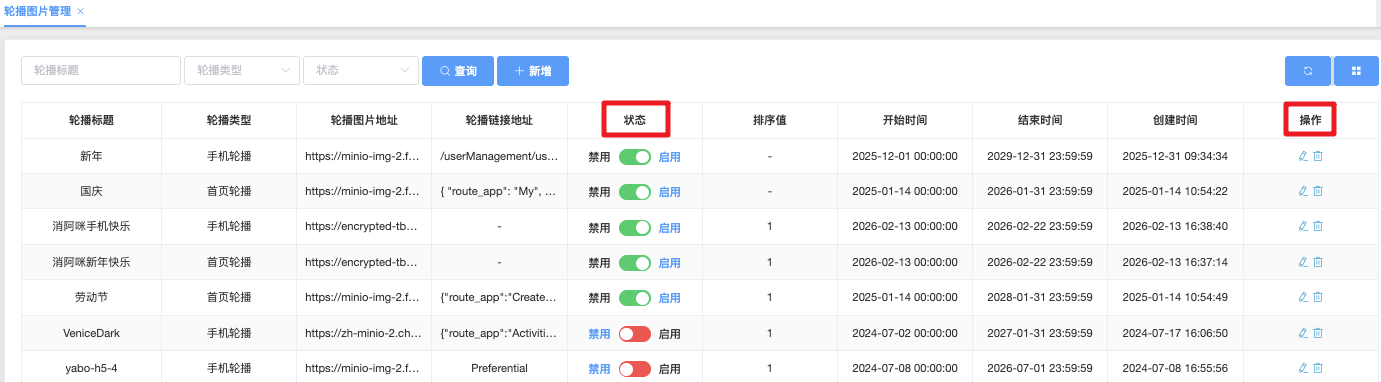 - 轮播图片地址:图片URL(通常为CDN链接,如 https://minio-img...)