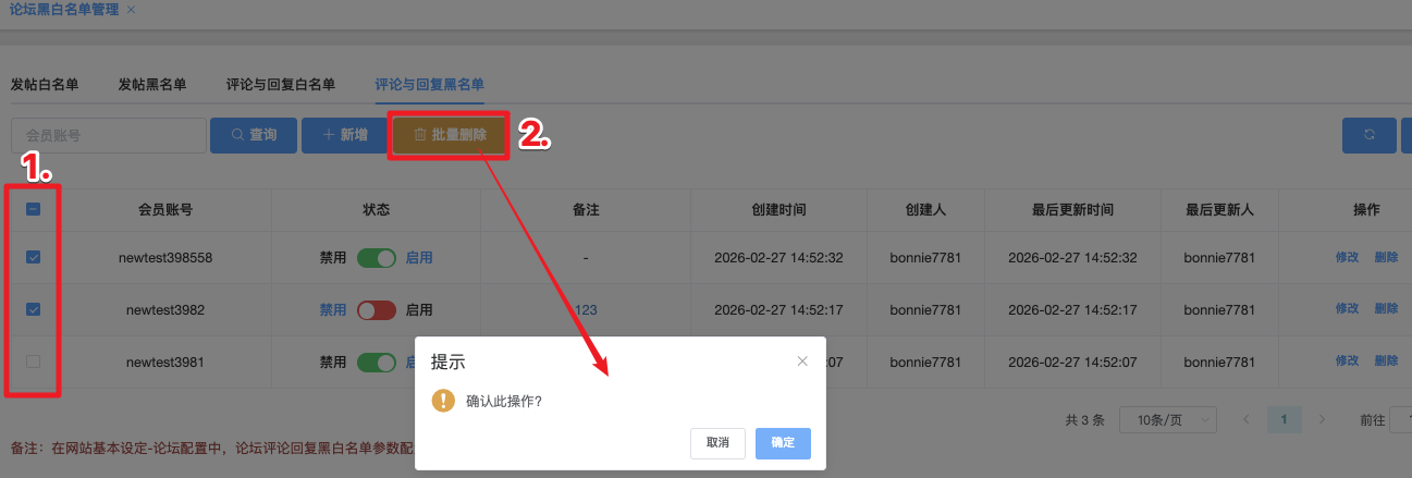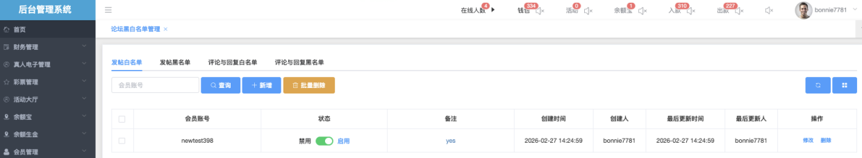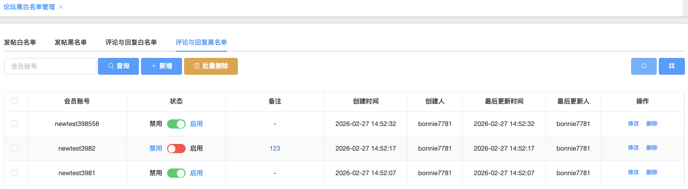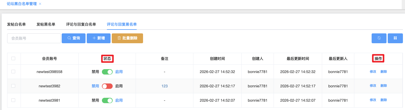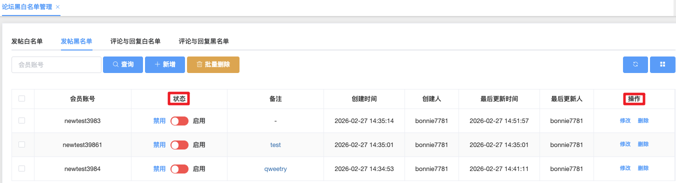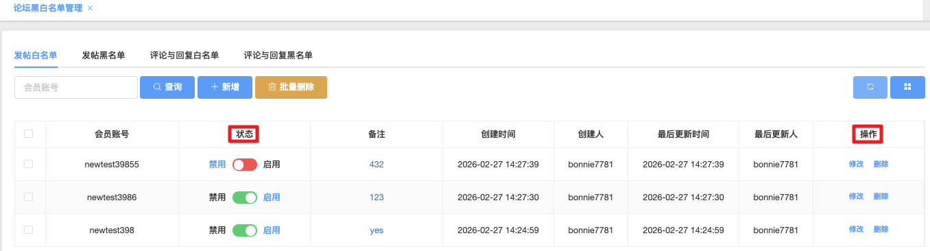 论坛黑白名单管理