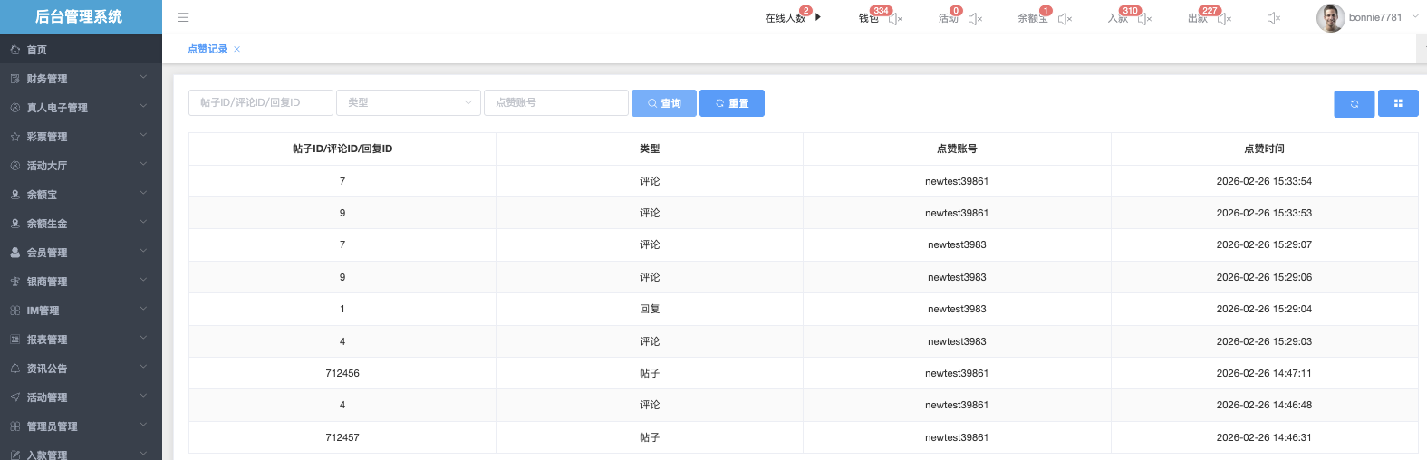 - 点赞账号:执行点赞操作的用户名