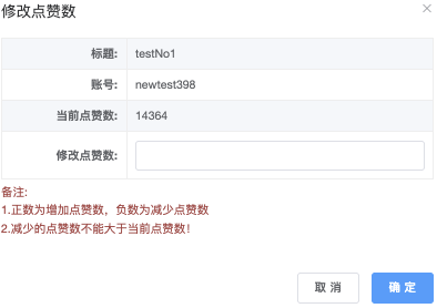 - 修改点赞数:点击后弹出「修改点赞数」,修改点赞数:填写数字为数量(如 9999)