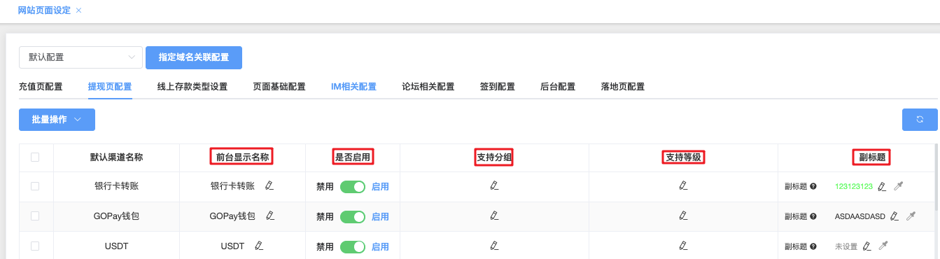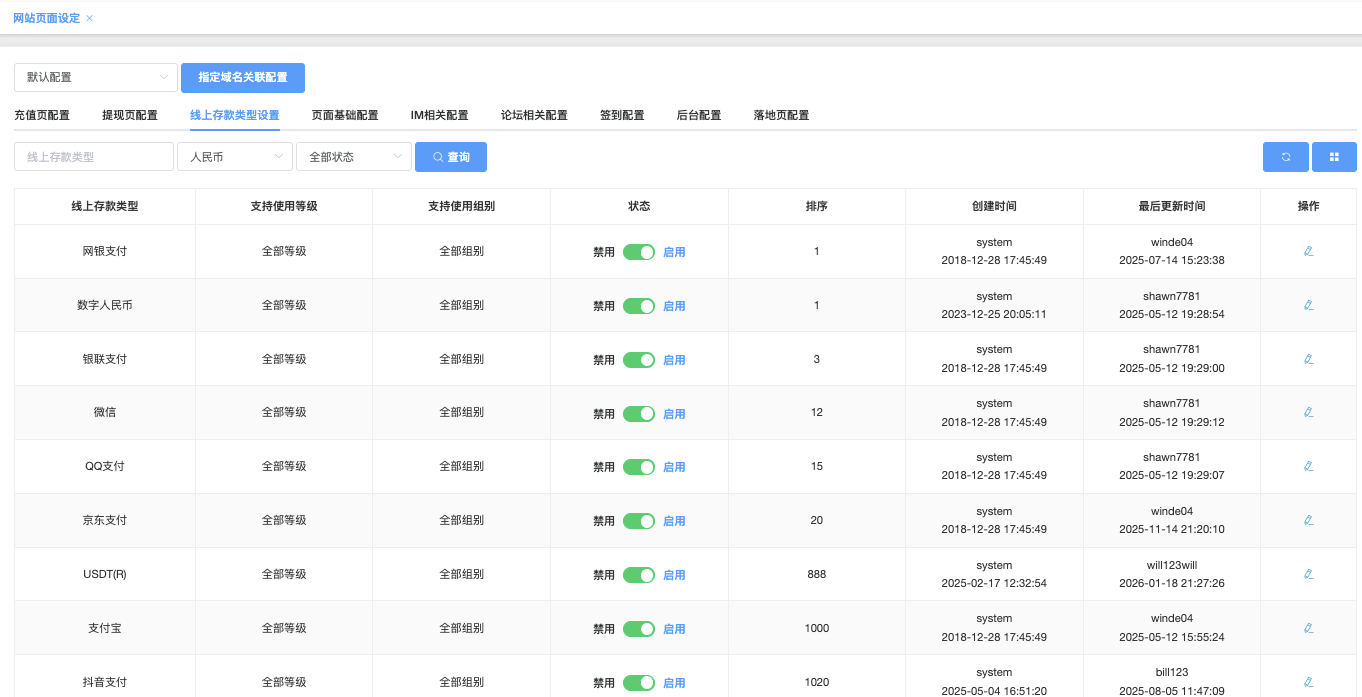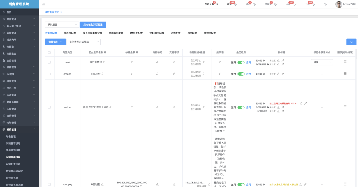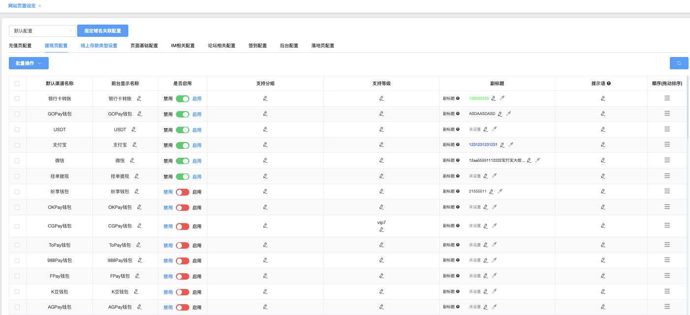 这个页面是平台最核心的全局基础参数配置中心,用于设置整个网站的名称、域名展示、注册规则、IP限制、邀请码规则、APP下载链接等基础信息。这些设置直接影响前端用户看到的网站信息、注册流程、访问限制、推广行为等,是运营上线、渠道推广、风控调整时最常修改的页面。