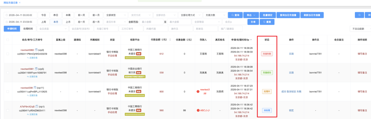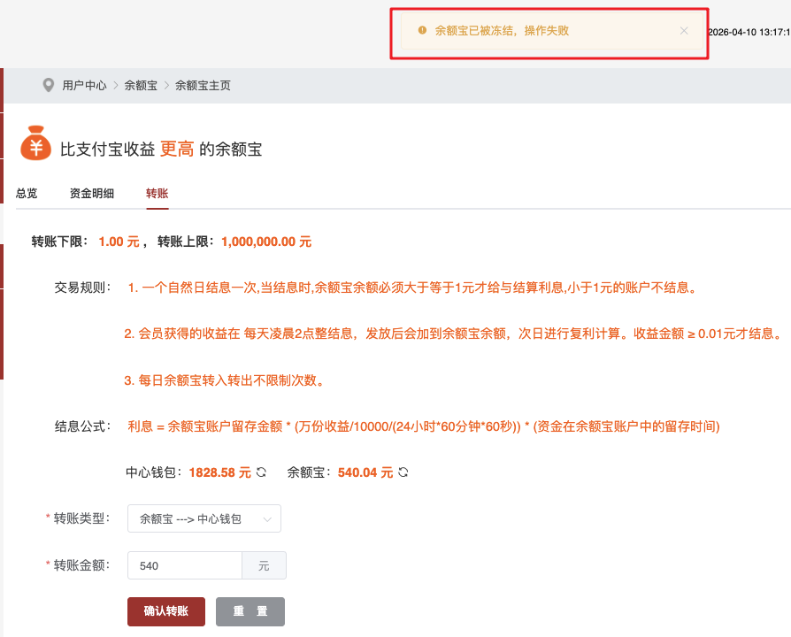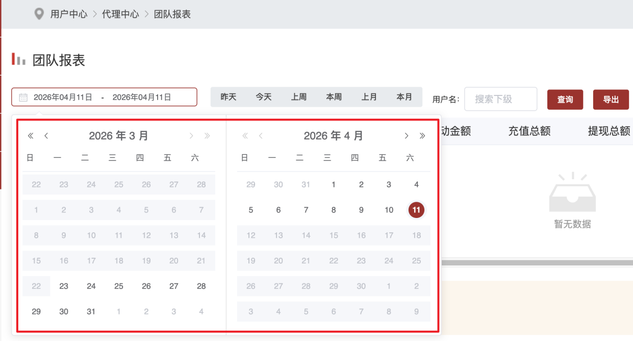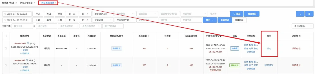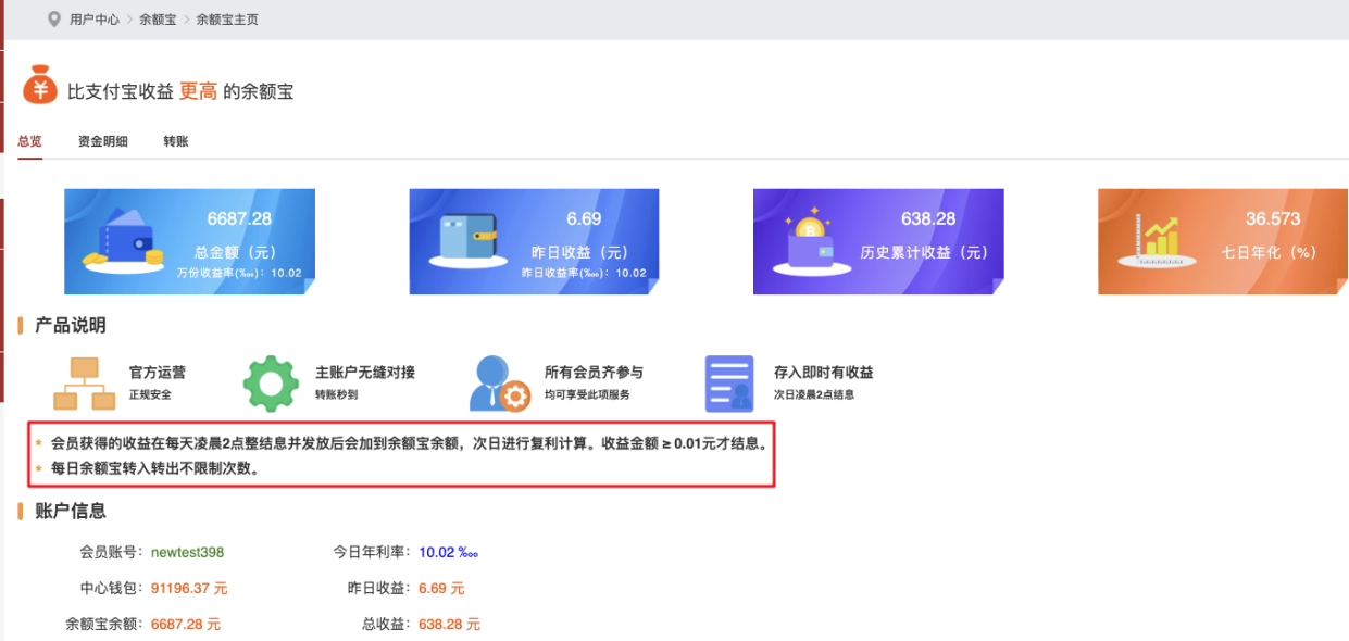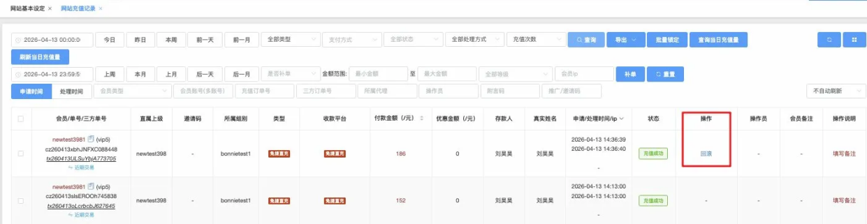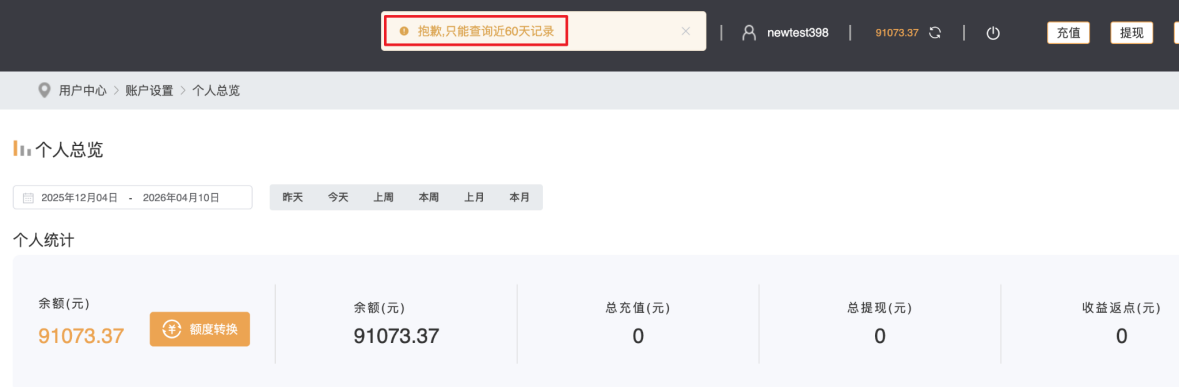 - 一旦账户已经生成,其返点比例就已固定。即使后续修改后台的「默认最大返点比例」,已生成账户的返点比例也不会改变。