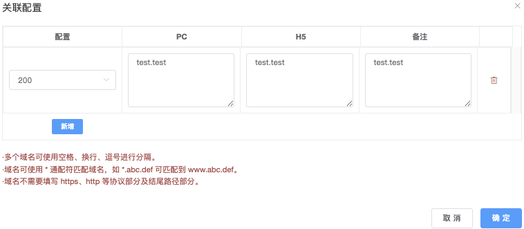 - 点击列表操作栏「配置」编辑,可对单条配置内容进行修改,修改完成后点击「确定」生效。