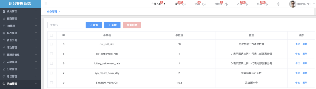 本页面用于管理系统运行所需的全局参数设置,每个参数以键值对形式存储,通过修改参数值可调整系统的运行行为,无需改动程序代码。