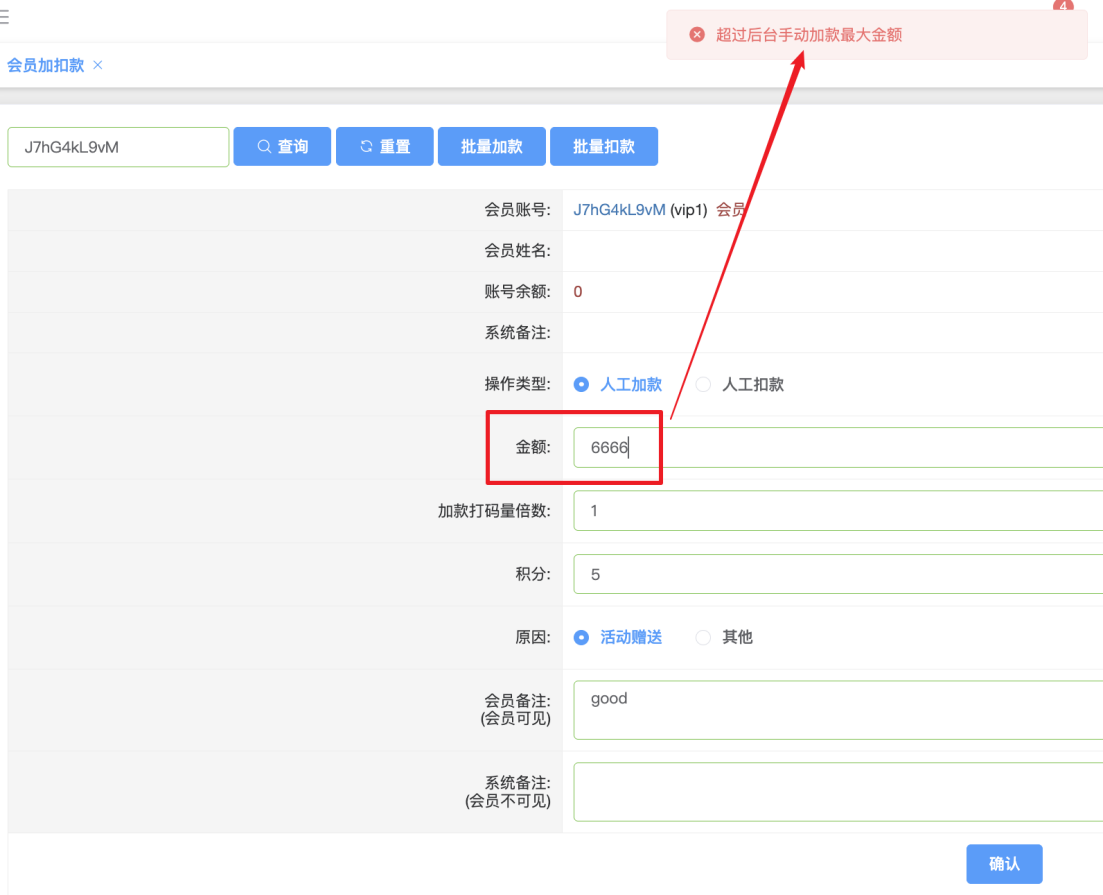 必须先行在 (活动管理-注册赠送彩金手机) 中新增对应的电话号码,否则无法进行赠送操作。