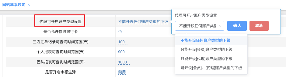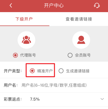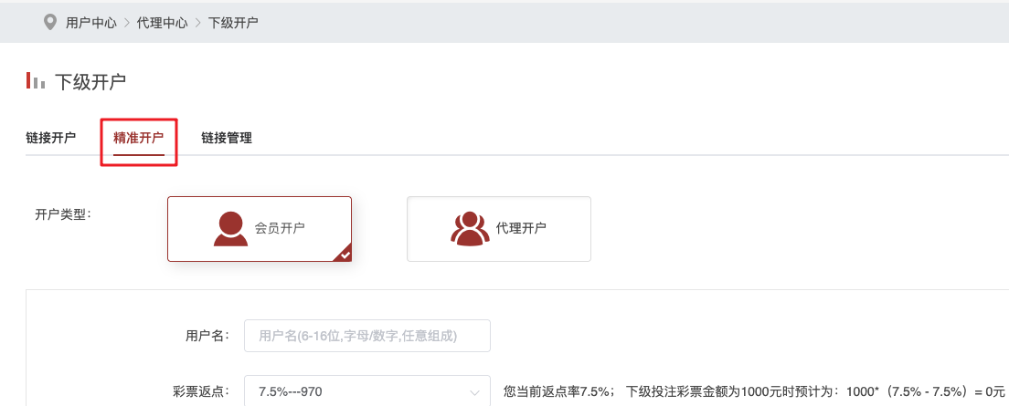 - 这个设置仅影响新开户时系统自动赋予的下级账户返点比例。