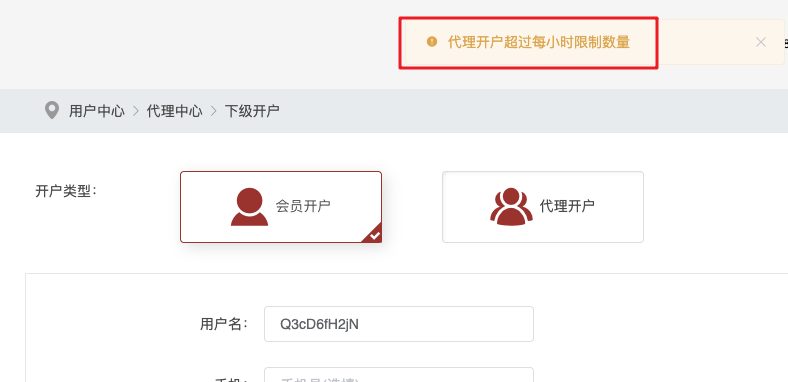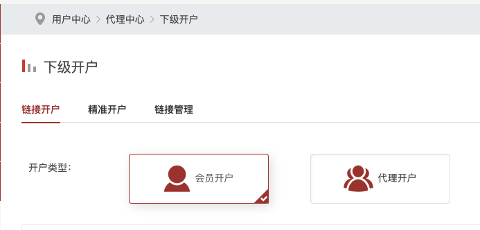 ⚠️特别说明: 无论后台将此设定切换为「会员」或「代理」,前台注册页面的外观样式不会有任何变化,用户看到的注册界面完全相同。差异仅体现在注册完成后,系统内部对该账户的类型归类。