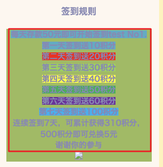 标题/说明:每天存款50元即可开始签到啊啊啊啊...(带蓝色背景、16px字体、居中)