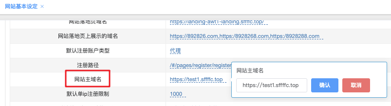 ⚠️ 特别说明: 此为系统核心域名设定,影响范围包括推广链接生成、页面跳转、邀请码链接等。