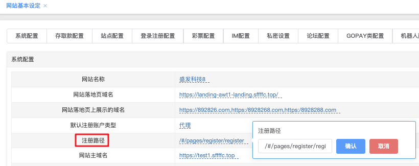 ⚠️ 特别说明: 此路径决定前台注册页面的访问地址。若路径修改,原有注册链接将失效。