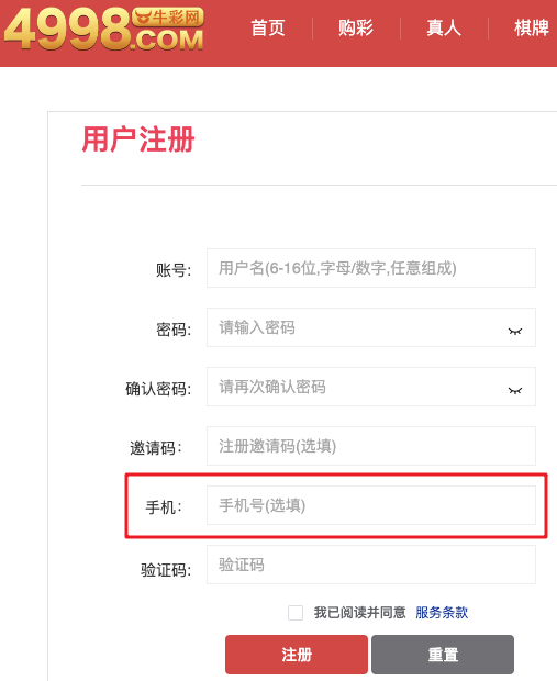 设定为「启用」时,前台注册页面会显示「手机号」栏位(Web版与H5版均会显示),用户注册时可直接输入手机号完成注册。