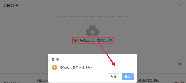 - 支持将文件直接拖曳至窗口内,或点击「点击上传」选择本地文件。