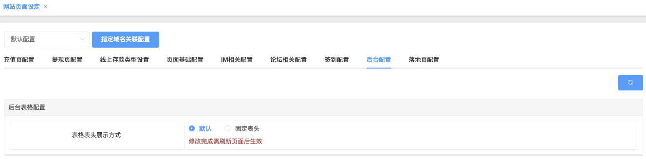 - 表格表头展示方式:默认、固定表头。(修改完成后需刷新页面才能生效)