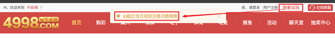 ⚠️ 特别说明: 此限制针对「游客试玩」功能,与一般注册限制分开计算。当同一IP当日试玩注册次数达到上限。